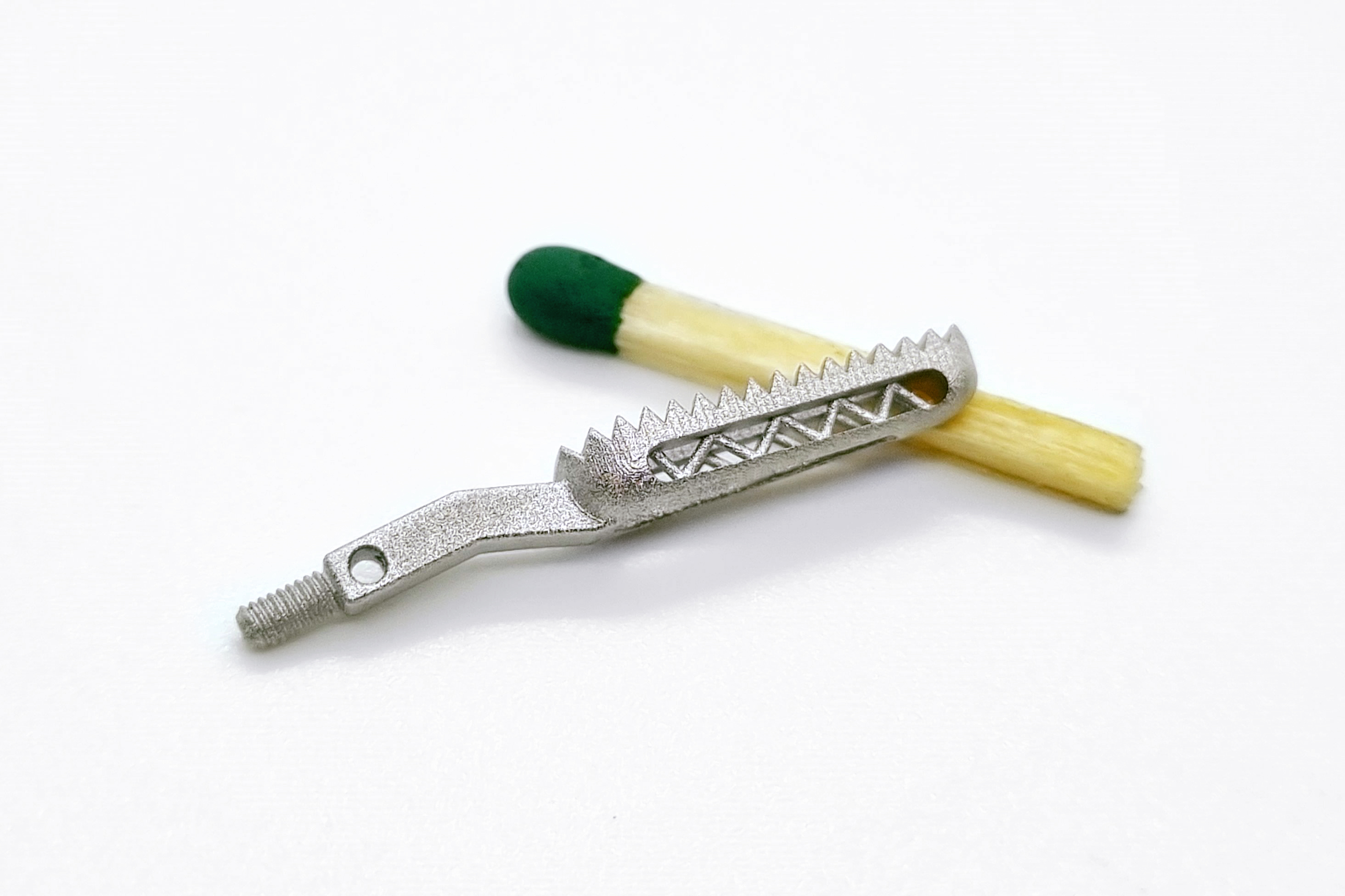 Lithography-based Metal Manufacturing (LMM) is a process for manufacturing high-precision, small metal components. In this process, the starting material consisting of metal powder and a photopolymer is stored in a material container. The mixture has a "butter like" consistency at room temperature. When heated, it becomes liquid and can be applied evenly and in thin layers to the building platform with the aid of a heated coating blade. This is locally exposed by a projector and the photopolymer hardens in the exposed areas. This process is repeated layer by layer until a Grünling is formed. To remove the Grünling from the material block, it is heated to about 50 °C, causing the unexposed material to melt and flow off. The material mixture that has flowed off can be reused for further printing processes without loss. Thermal debinding of the photopolymer and sintering of the parts are carried out in a two-stage process. The sintered parts are approx. 20 % smaller than the printed Grünling, whereby the exact sintering shrinkage factor depends on the material composition used and has very good reproducibility.